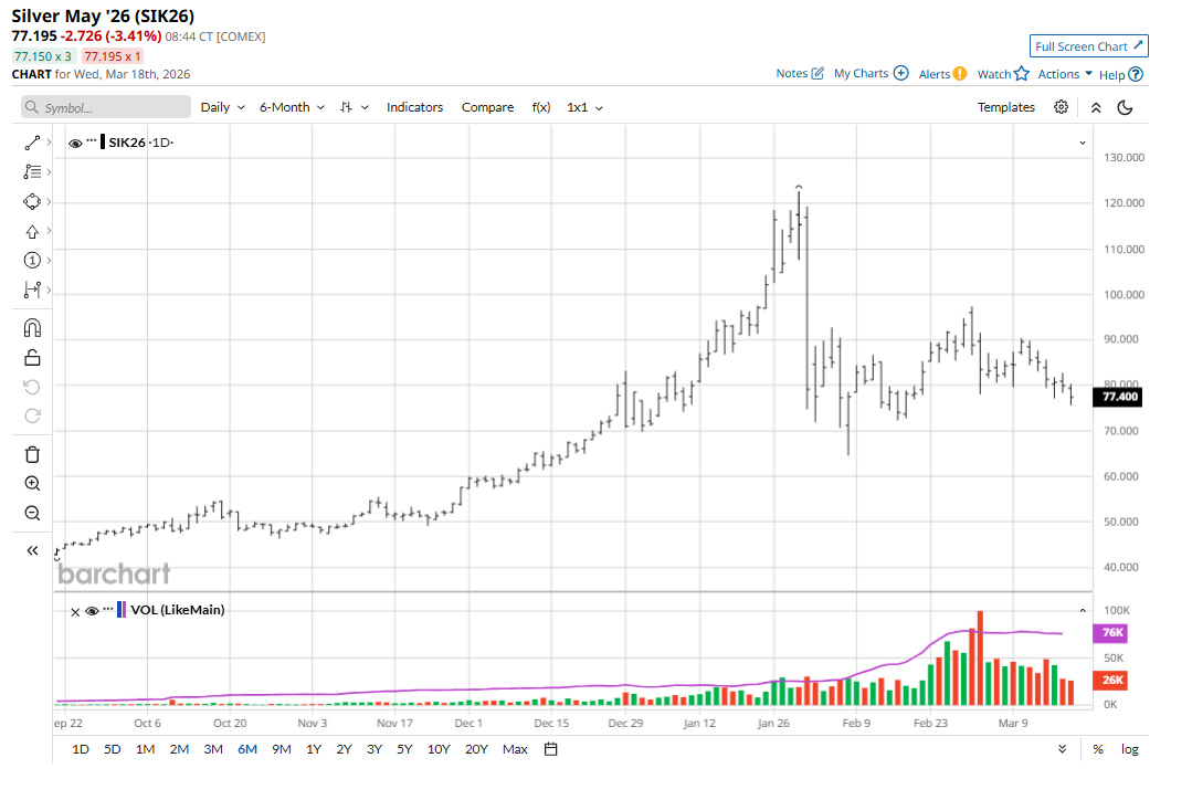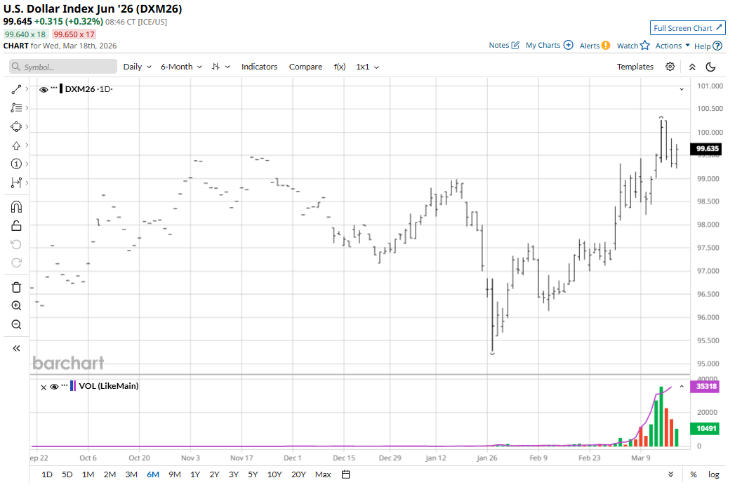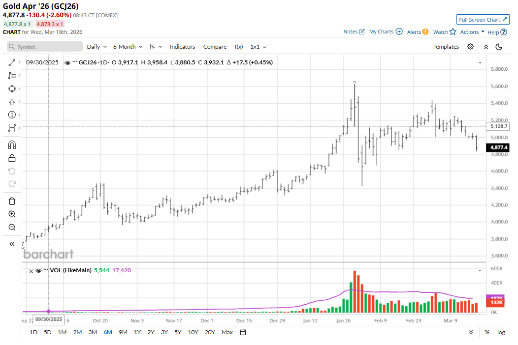 And the war in the Middle East is amplifying inflation worries, as crude oil prices (CLJ26) are up sharply from one month ago. Europe and Asia are especially feeling the pinch of higher energy prices. Those regions are also the biggest consumers of gold jewelry.