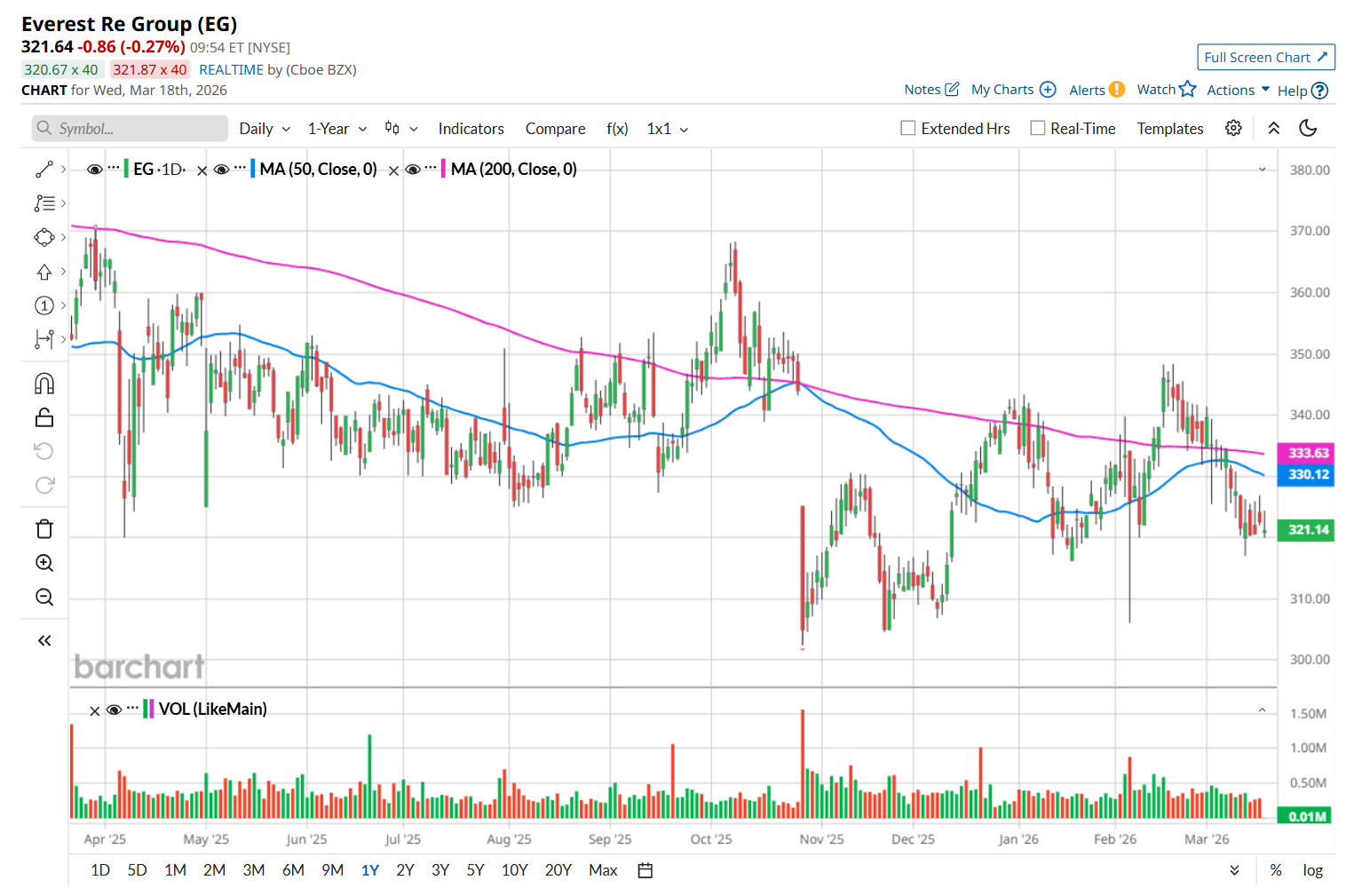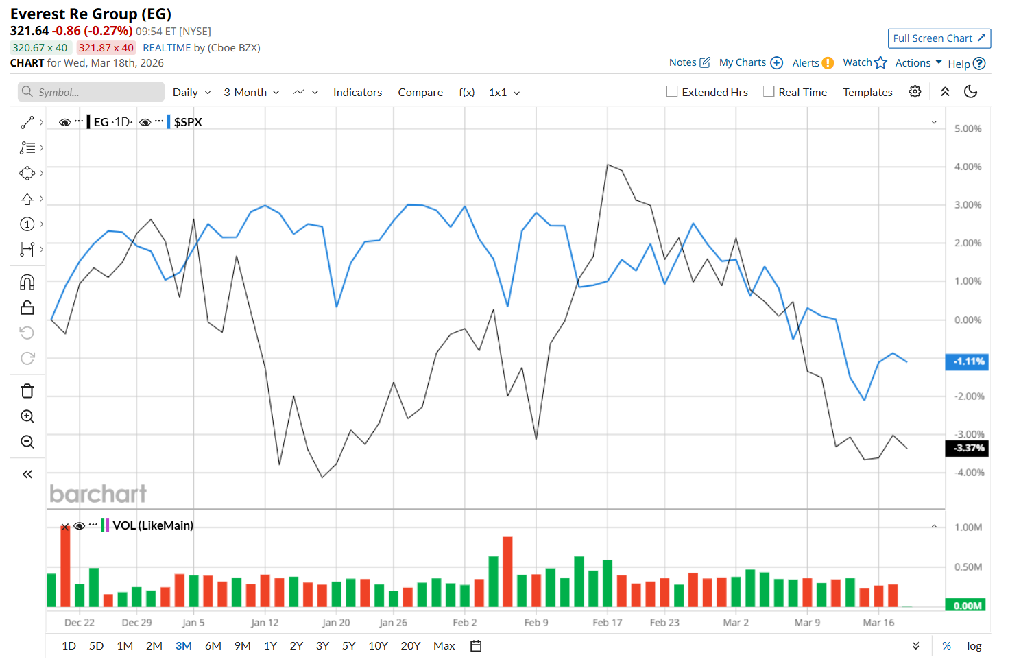 This insurance company has slipped 13% from its 52-week high of $370.21, reached on Mar. 28, 2025. Shares of EG have declined 3.3% over the past three months, underperforming the S&P 500 Index’s ($SPX) 1.2% drop during the same time frame.