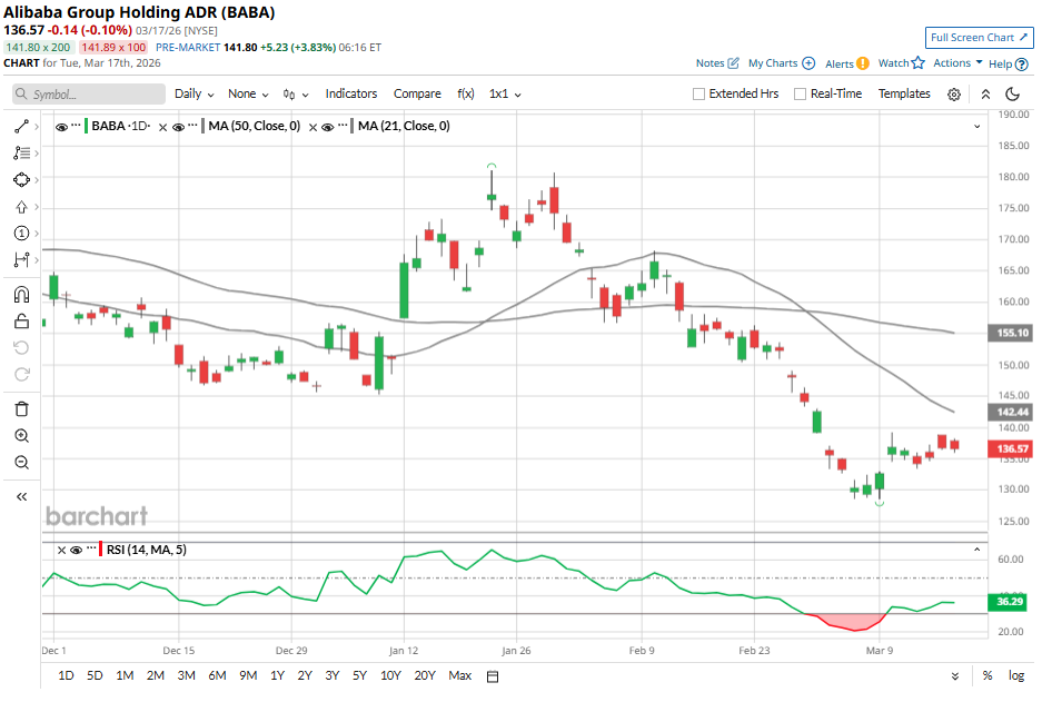 Alibaba (BABA) will release financial results for the quarter ended Dec. 31 tomorrow, Thursday, March 19. Ahead of the announcement, BABA stock has pulled back significantly, declining 29% from its 52-week high of $192.67.