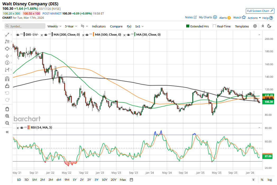 There has been a disconnect between Disney’s price action and earnings, as while its profits have increased, the stock hasn’t really gone anywhere over the last three years. As a result, its valuation multiples have contracted, and DIS trades at a forward price-to-earnings (P/E) multiple of just over 15x, well below where its average S&P 500 Index ($SPX) peer trades at. The multiples look reasonably attractive to me, considering the double-digit earnings growth the company is expected to deliver in 2026 and 2027.