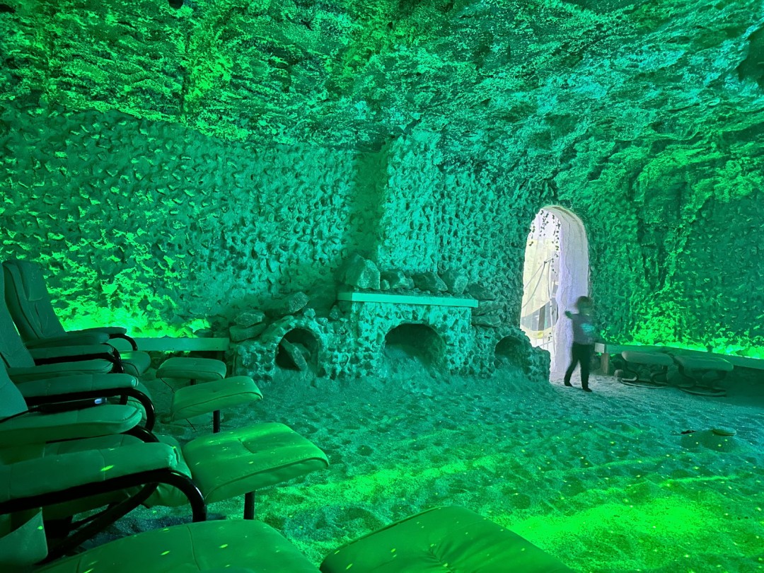 Salt Cave Paradise also offers halotherapy dry salt rooms, where guests breathe therapeutic mineral-rich salt aerosol during relaxing sessions.