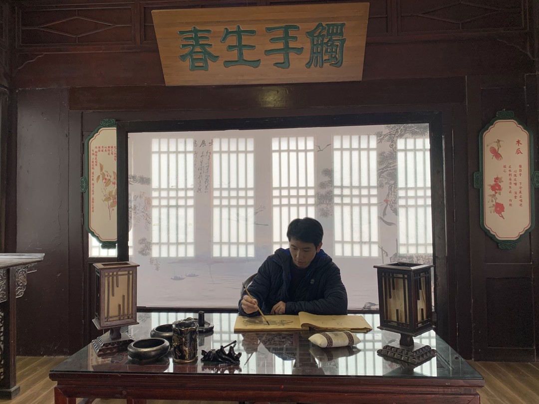 Visitors can participate in traditional cultural activities such as Chinese calligraphy as part of their travel experience.
