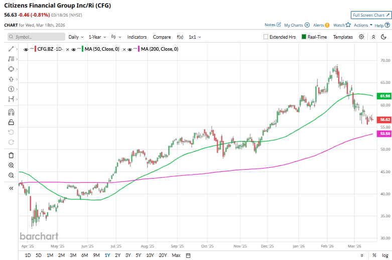 From a technical standpoint, CFG has been trading above its 200-day moving average since the end of June 2025, but has fallen below the 50-day moving average by the end of last month.