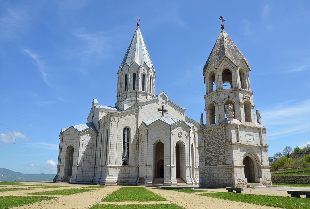 The 18-19th century Saint Amenaprkich Ghazanchetsots Cathedral, the largest church in the city of Shushi, Nagorno-Karabakh/Artsakh, completed in 1887 and consecrated in 1888, was deliberately targeted and shelled twice during the 2020 war. [Photo: Stephan Abrahamyan]