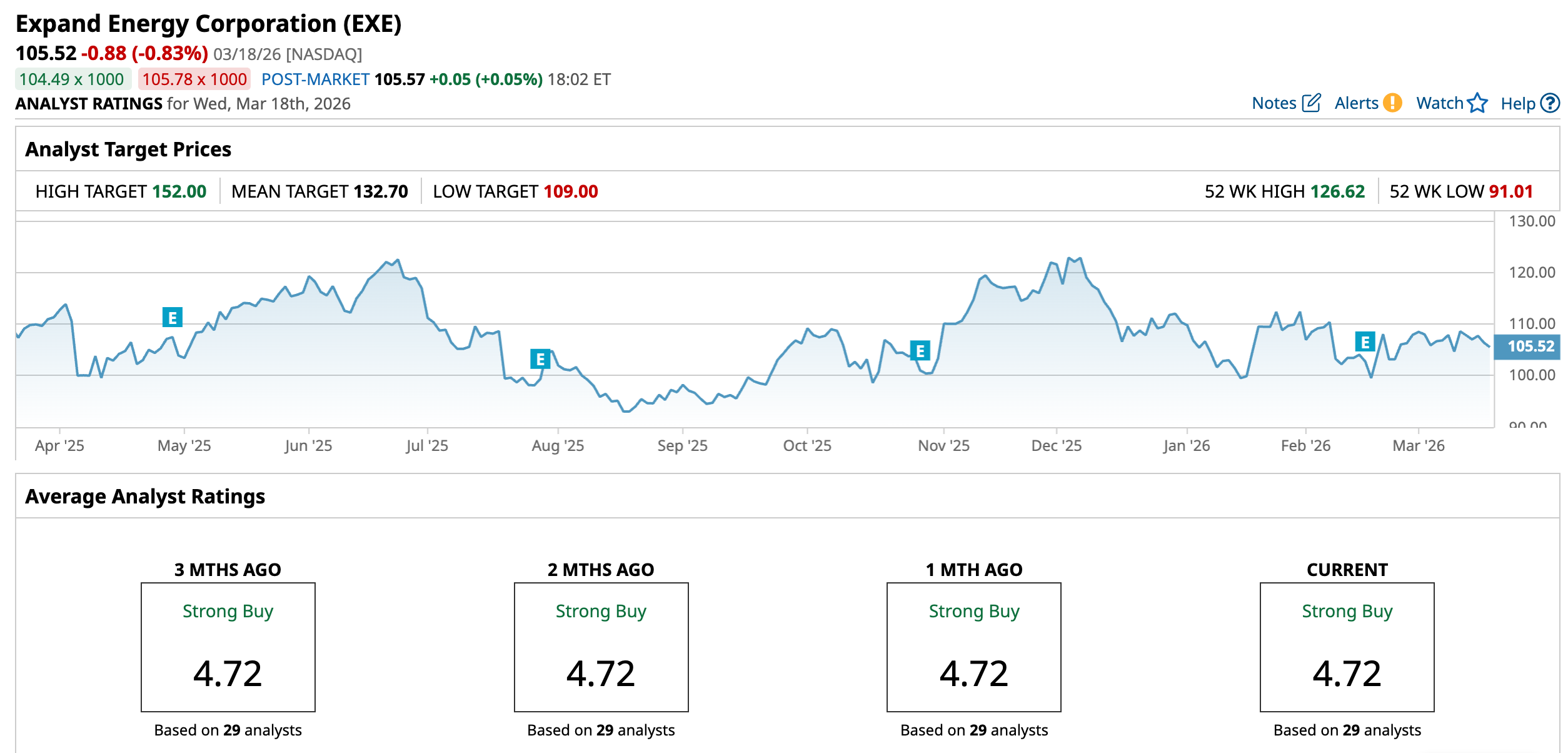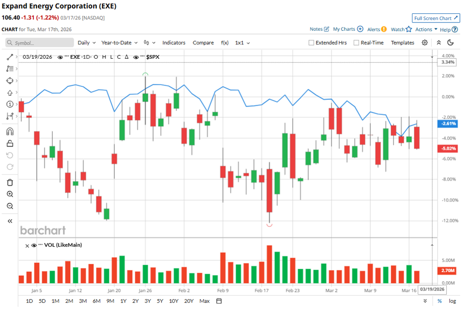 Unlike Targa’s strong run to new highs in 2026, Expand Energy has faced a more challenging start to the year. The company’s heavy exposure to natural gas has weighed on performance, especially as oversupply concerns for 2027 continue to pressure sentiment. As a result, the stock is down about 4.39% so far this year, underperforming the broader S&P 500 Index, which has seen a comparatively milder decline of 3.23% over the same period.