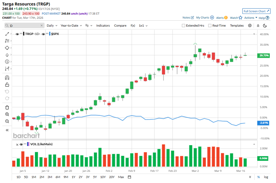 As cleaner fuels and related feedstocks gain traction, Targa’s infrastructure continues to serve as a key conduit between upstream production and downstream consumption. With a market capitalization of around $51.8 billion, Targa has been a clear beneficiary of the current geopolitical backdrop, as rising oil prices lift sentiment across the energy space.