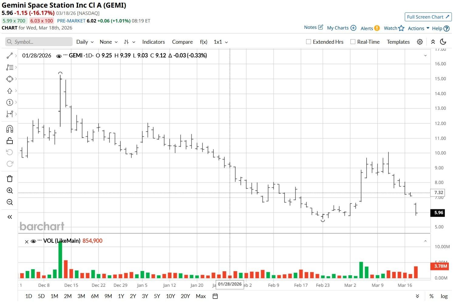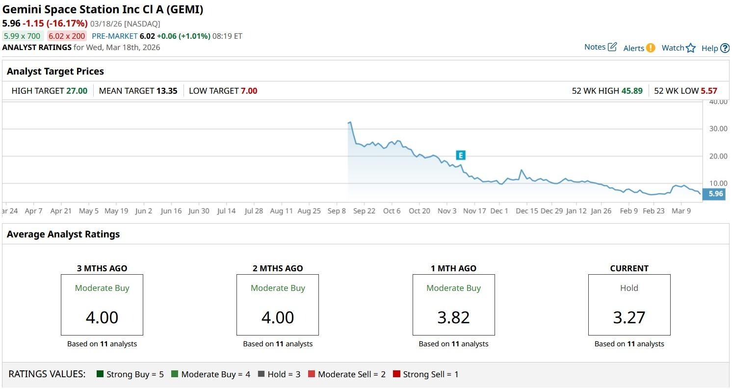 Gemini Space Station (GEMI) shares crashed on March 18 after Citi analysts downgraded the crypto exchange to “Sell” and lowered their price target to $5.50, indicating more than 20% downside from their previous close.
