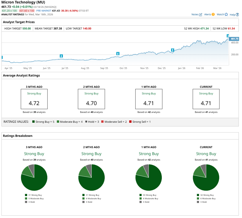 Most analysts are bullish, with MU stock sporting a “Strong Buy” consensus rating.