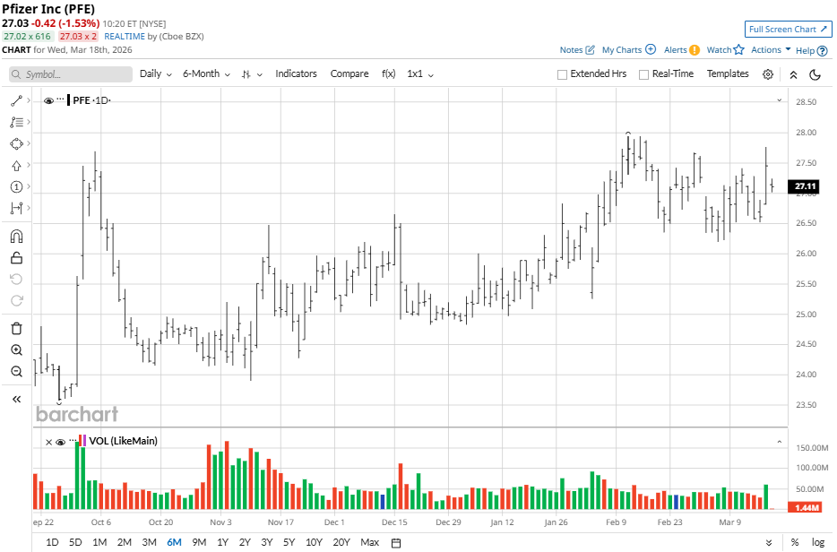 Pfizer has demonstrated steady resilience throughout 2026, marking a significant recovery from its 2025 lows as investor sentiment shifts toward its non-Covid pipeline. With a market capitalization of approximately $156 billion, the company remains a staple for income-oriented investors, anchored by a robust 6.91% dividend yield.