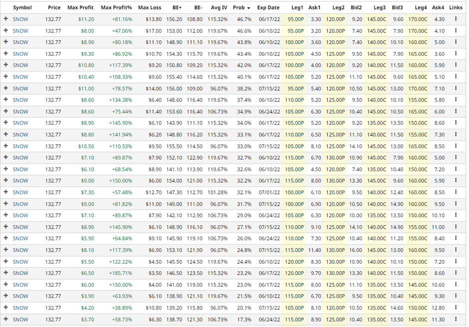Snowflake was another stock with both a high IV Percentile and IV Rank from our initial screener.