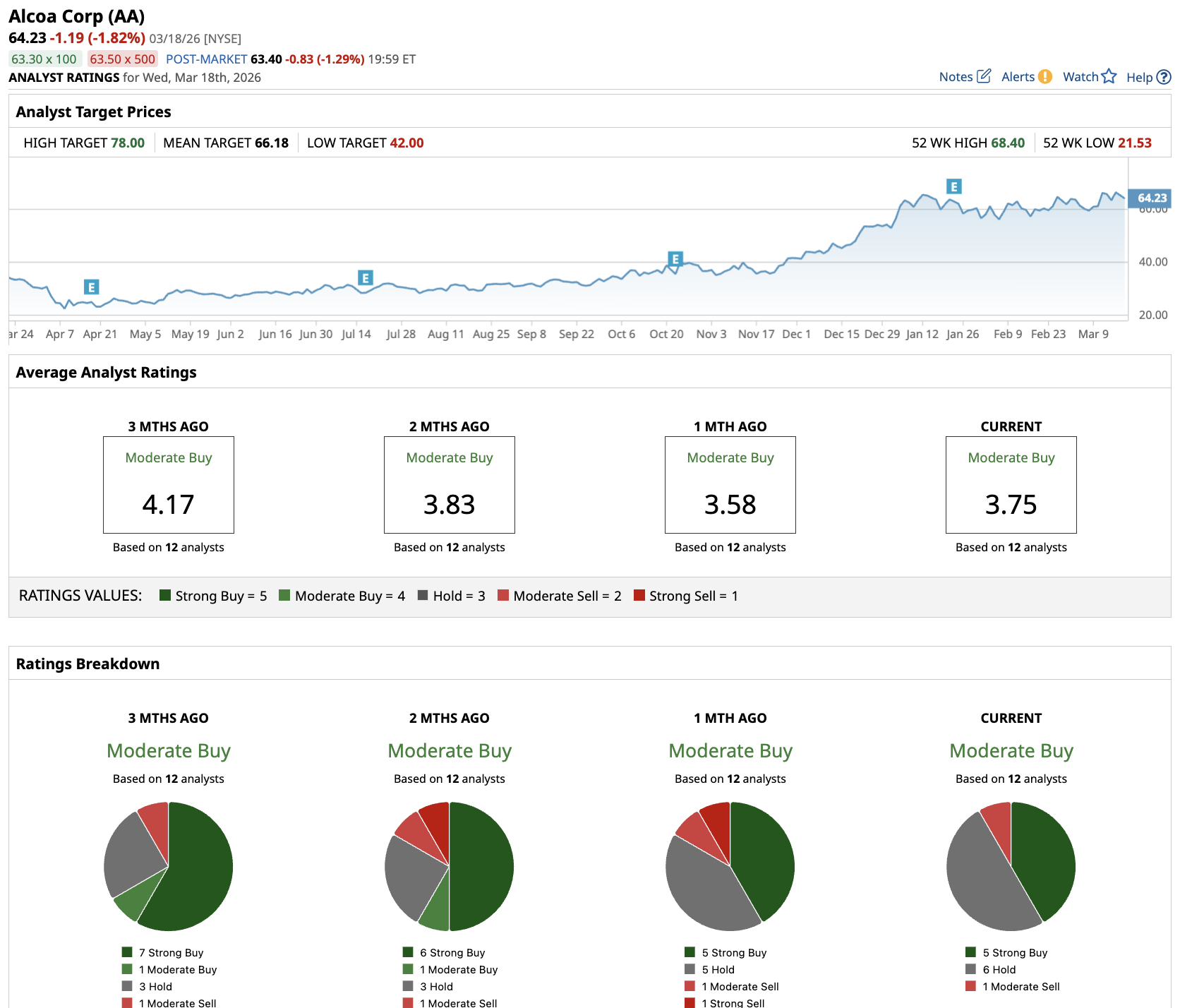 Analysts tracking Alcoa stock forecast free cash flow (FCF) to increase from $350 million in 2026 to $957 million in 2028. If Alcoa stock is priced at 20x forward FCF, it could surge 20% over the next two years. Out of the 12 analysts covering Alcoa stock, five rate it a “Strong Buy,” six recommend “Hold,” and one calls it a “Moderate Sell.”