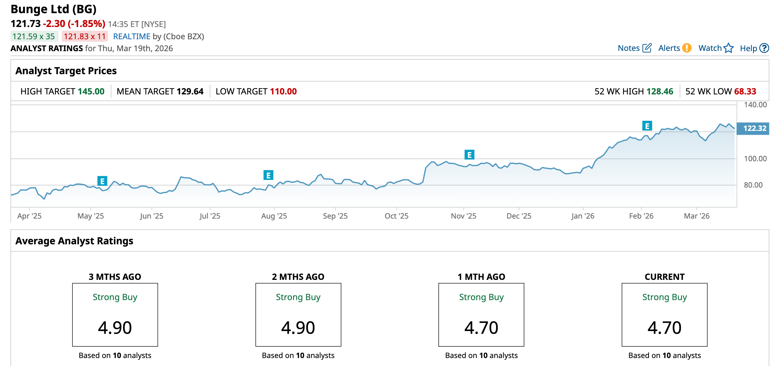 Wall Street’s confidence in Bunge comes down to consistency, earning the stock an overall consensus “Strong Buy” rating. Of the 10 analysts tracking the stock, eight back it with a “Strong Buy,” one has a “Moderate Buy,” and the remaining one sits on the sidelines with a “Hold" rating.