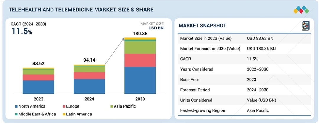 The global telehealth and telemedicine market, which was valued at USD 83.62 billion in 2023 and reached USD 94.14 billion in 2024, is on a decisive trajectory to reach USD 180.86 billion by 2030. This growth represents a resilient Compound Annual Growth Rate (CAGR) of 11.5% during the forecast period. The market's upward momentum is primarily fueled by an aging global population and a rising prevalence of chronic conditions that require consistent, long-term management. As healthcare systems grapple with a persistent shortage of physicians and nursing personnel, telehealth has emerged as a critical bridge, offering a cost-effective and efficient alternative to traditional in-person care. Furthermore, the expansion of Remote Patient Monitoring (RPM) systems and breakthroughs in telecommunication technologies-including AI-driven diagnostics and 5G connectivity-are fundamentally reshaping how care is delivered to medically underserved and rural populations.