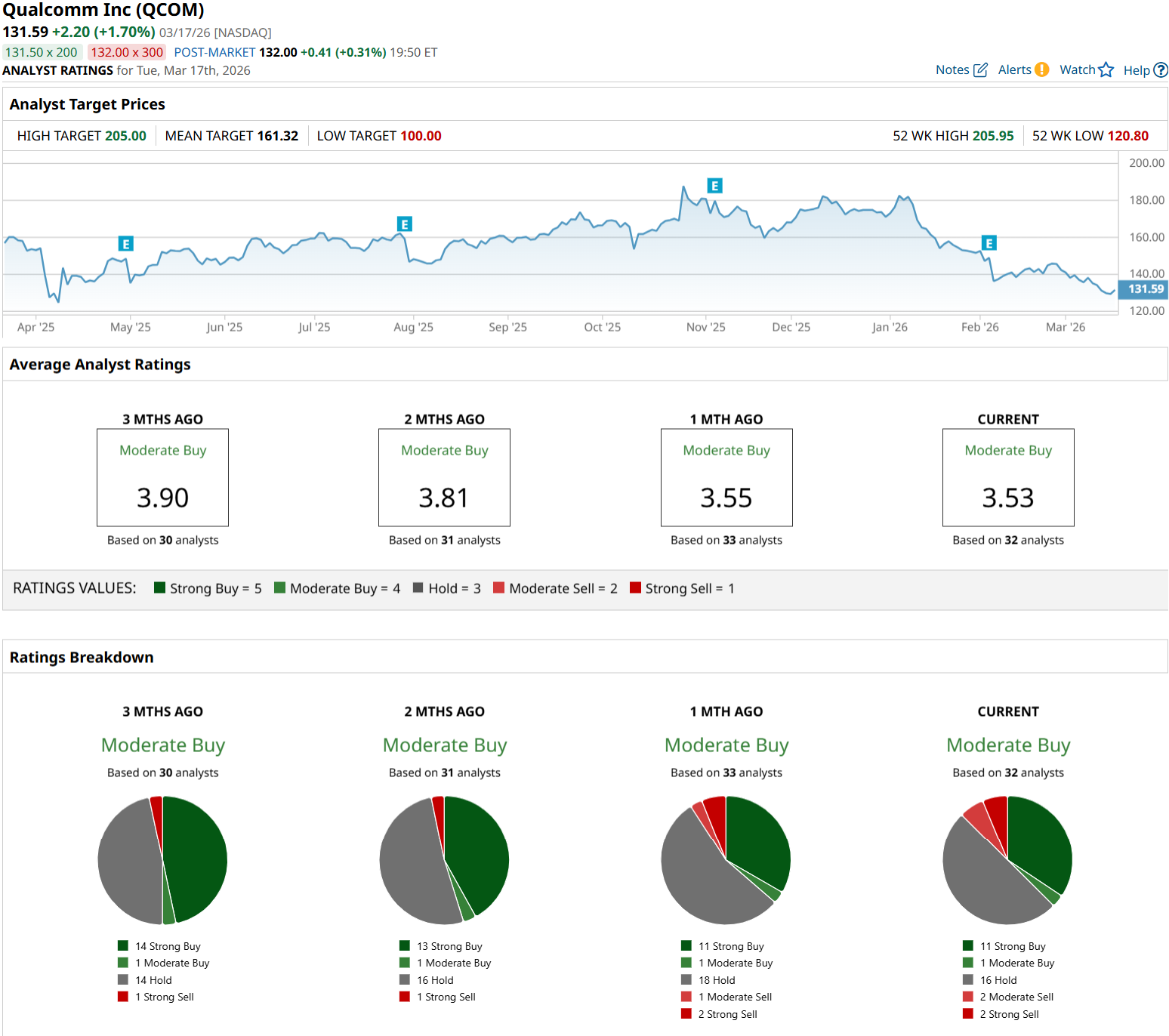 Even so, the wider analyst group is more positive. Across 32 analysts, the stock has a consensus “Moderate Buy” rating, and the average target price of $161.32 implies roughly 23% upside from recent levels.