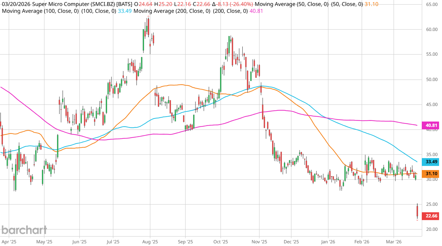 If today’s pre-market decline holds, Super Micro stock will be facing its steepest daily loss since October 2024.