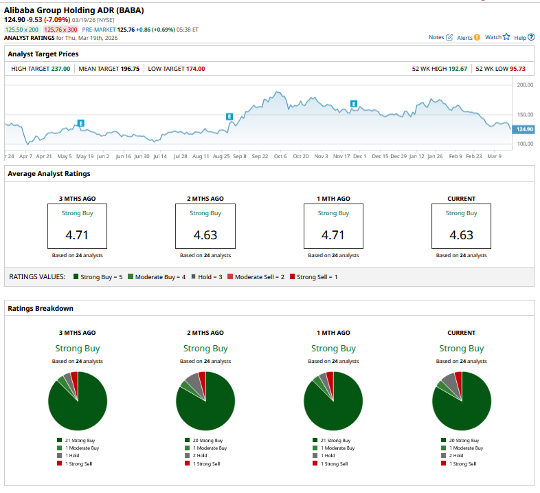 Meanwhile, even as Alibaba’s fiscal Q3 earnings spooked investors, sell-side analysts don’t seem too perturbed. Jefferies lowered the stock’s target price from $225 to $212 but maintained its “Buy” rating, while Bank of America maintained its “Buy” rating and $180 target price on the stock even as it talked about the negative earnings surprise in the quarter. US Tiger Securities upgraded the stock from a “Hold” to “Buy” while cutting the target price by $5 to $175. J.P. Morgan is also bullish on BABA and sees the stock as a “global AI” winner.