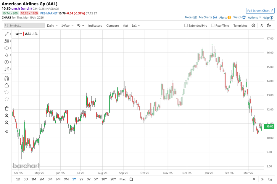 Based in Fort Worth, Texas, American Airlines operates a vast domestic and international network. With a market cap of roughly $7.1 billion, the airline runs more than 6,000 daily flights, connects over 350 destinations across 60+ countries, and serves upwards of 200 million customers each year.
