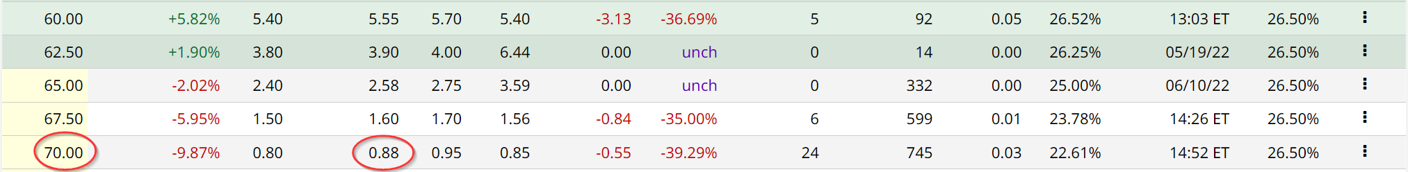 One covered call worth looking at is the Sept. 16 $70 strike price. That call option produces an income of 88 cents at the mid-point for the call option seller, or $88 per contract.