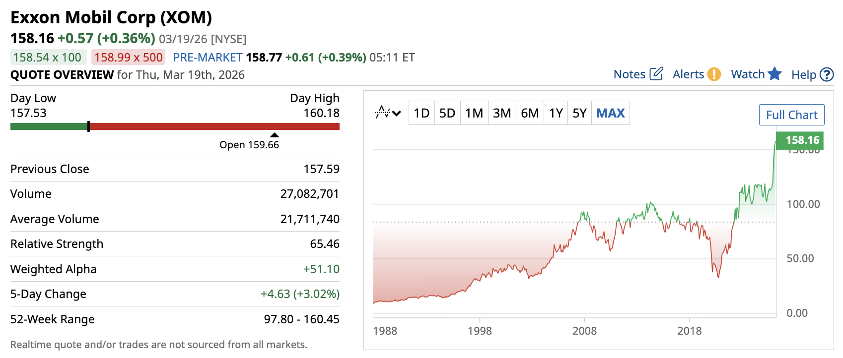 ExxonMobil stock is trading at approximately $158, and it is up nearly 37% year-to-date.
