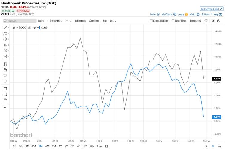 The REIT is currently down by 16.9% from its 52-week high of $20.52 touched in March 2025. Furthermore, DOC has gained 6.6% over the past three months, outperforming the Real Estate Select Sector SPDR Fund’s (XLRE) marginal rise during the same time frame.