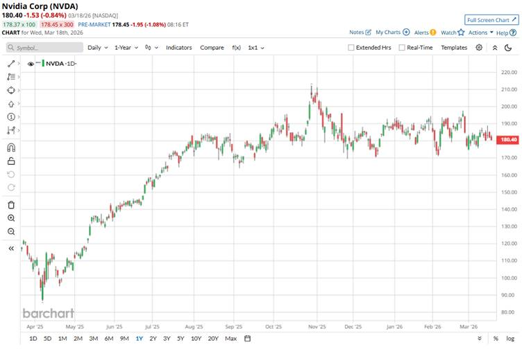 Most recently, Argus reiterated a “Buy” rating and $220 price target on Nvidia following GTC 2026, highlighting Nvidia’s dominant AI positioning, and a projected $1 trillion GPU revenue opportunity by 2027.