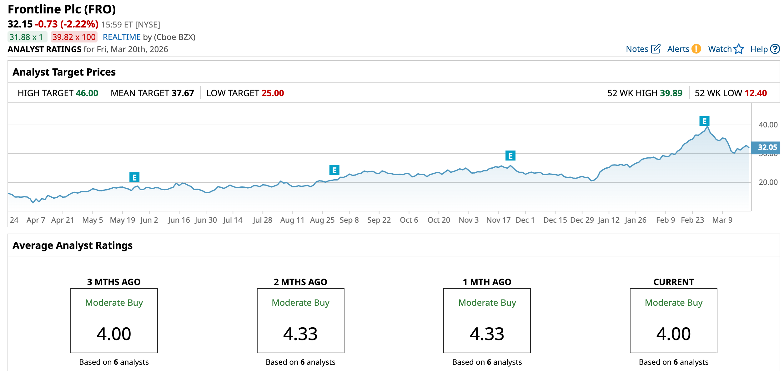 Wall Street is positive about Frontline stock with a “Moderate Buy” rating consensus. Analysts have set targets ranging from a low of $25 to a high of $46. The mean is set at $37.67. Based on the current stock price, significant upside potential could be 17.17%.
