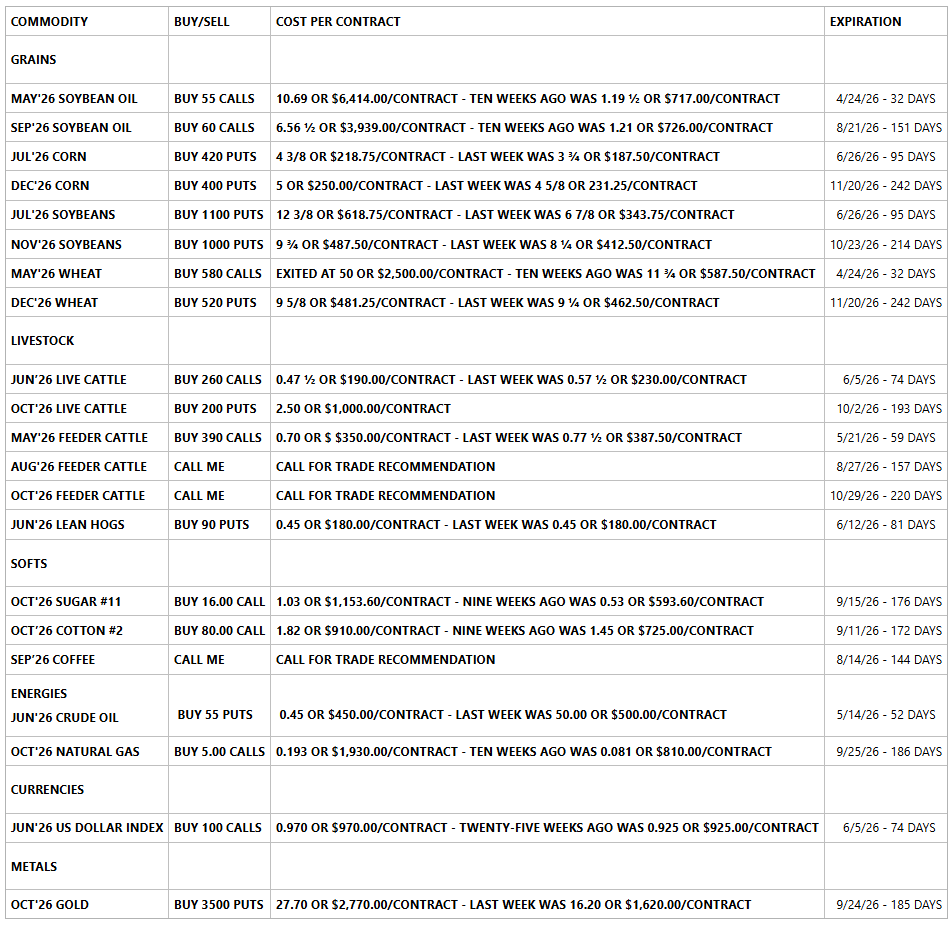 Thank you to all of my old and new Customers. I appreciate your business. To those of you that are close to opening an account, please call me if you have any questions, and I look forward to working with you soon. To anyone thinking about opening a Hedge or Trading account, give me a call and we can talk about it.