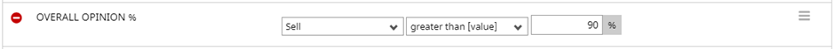 Let’s strengthen the screener by adding only stock with a 90% or greater Sell Rating.