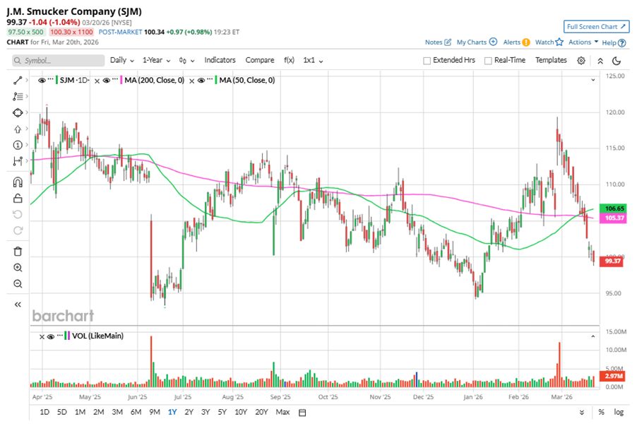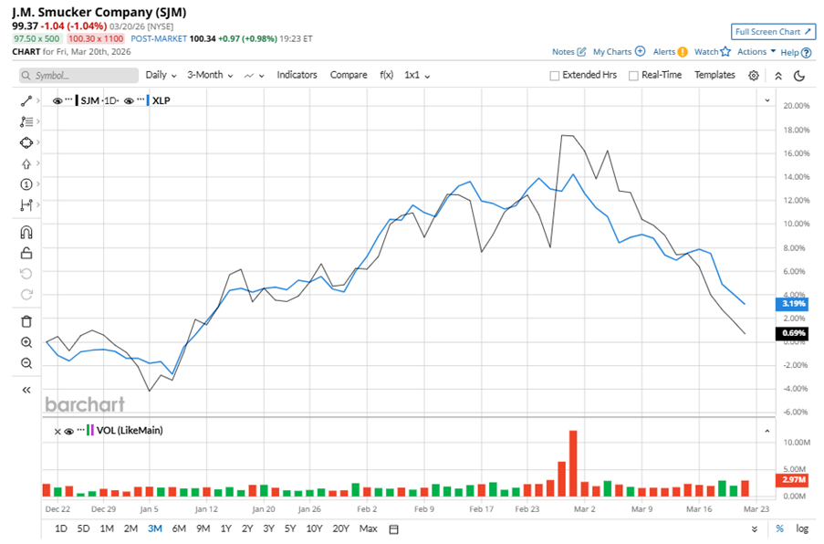 Despite its notable strength, SJM slipped 17.7% from its 52-week high of $120.76, achieved on Apr. 3, 2025. Over the past three months, SJM stock gained marginally, underperforming the State Street Consumer Staples Select Sector SPDR ETF’s (XLP) 3.2% gains during the same time frame.