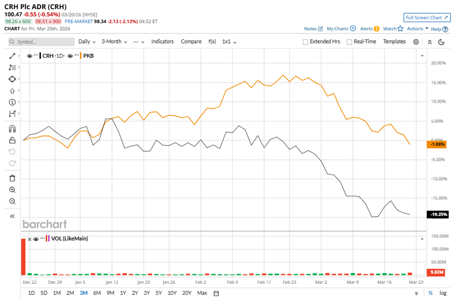 Shares of CRH fell 11.2% on a six-month basis but climbed 3% over the past 52 weeks, underperforming PKB’s six-month 1.2% losses and 34.1% returns over the last year.