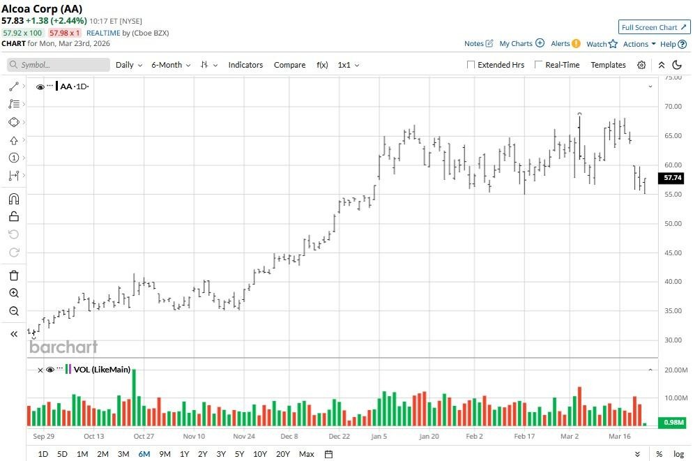 Following recent weakness, Alcoa stock is roughly flat for the year.