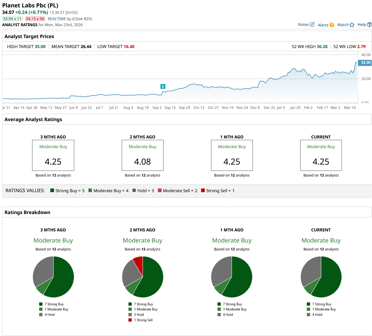 PL stock's rally this year is not just fueled by hype. In the recent fourth quarter of fiscal 2026, Planet Labs reported revenue of $300 million, an increase of 26% year-over-year (YoY). The company achieved its fifth straight quarter of positive adjusted EBITDA of $2.3 million. This fiscal year marked two major milestones. The company achieved its first full year of adjusted EBITDA profitability of $15.5 million. It also reported its first annual positive free cash flow of $52.9 million. This combination of growth, profitability, and cash flows is rare for a sector that burns cash heavily. It could be the reason why investors are suddenly more optimistic about the stock.