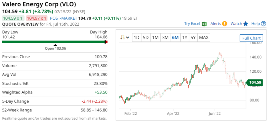 Let’s take a look at the first line item – a bull call spread on VLO.