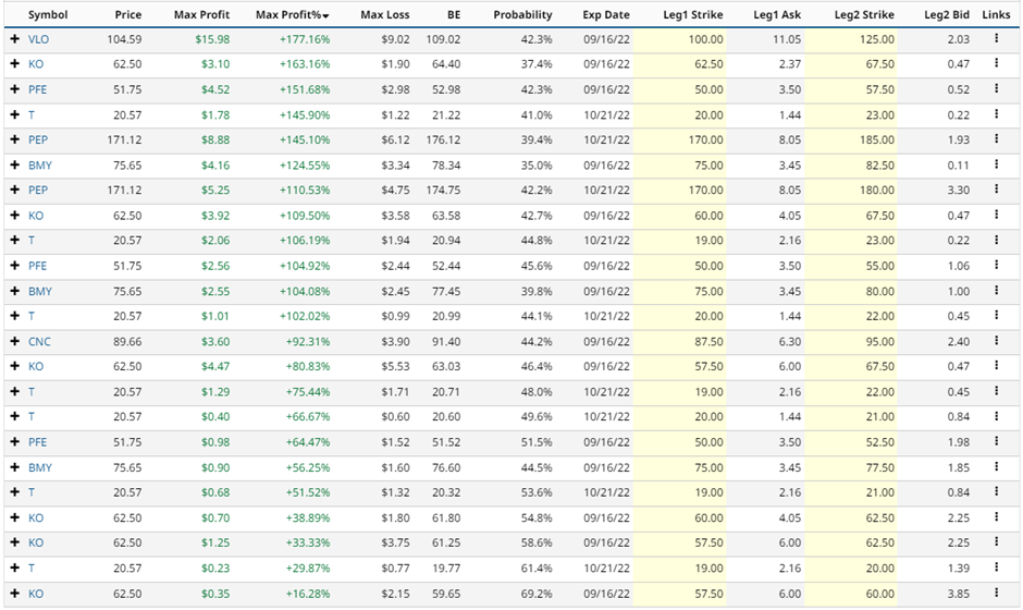 Let’s take a look at Barchart’s Bull Call Spread Screener for July 18th:
