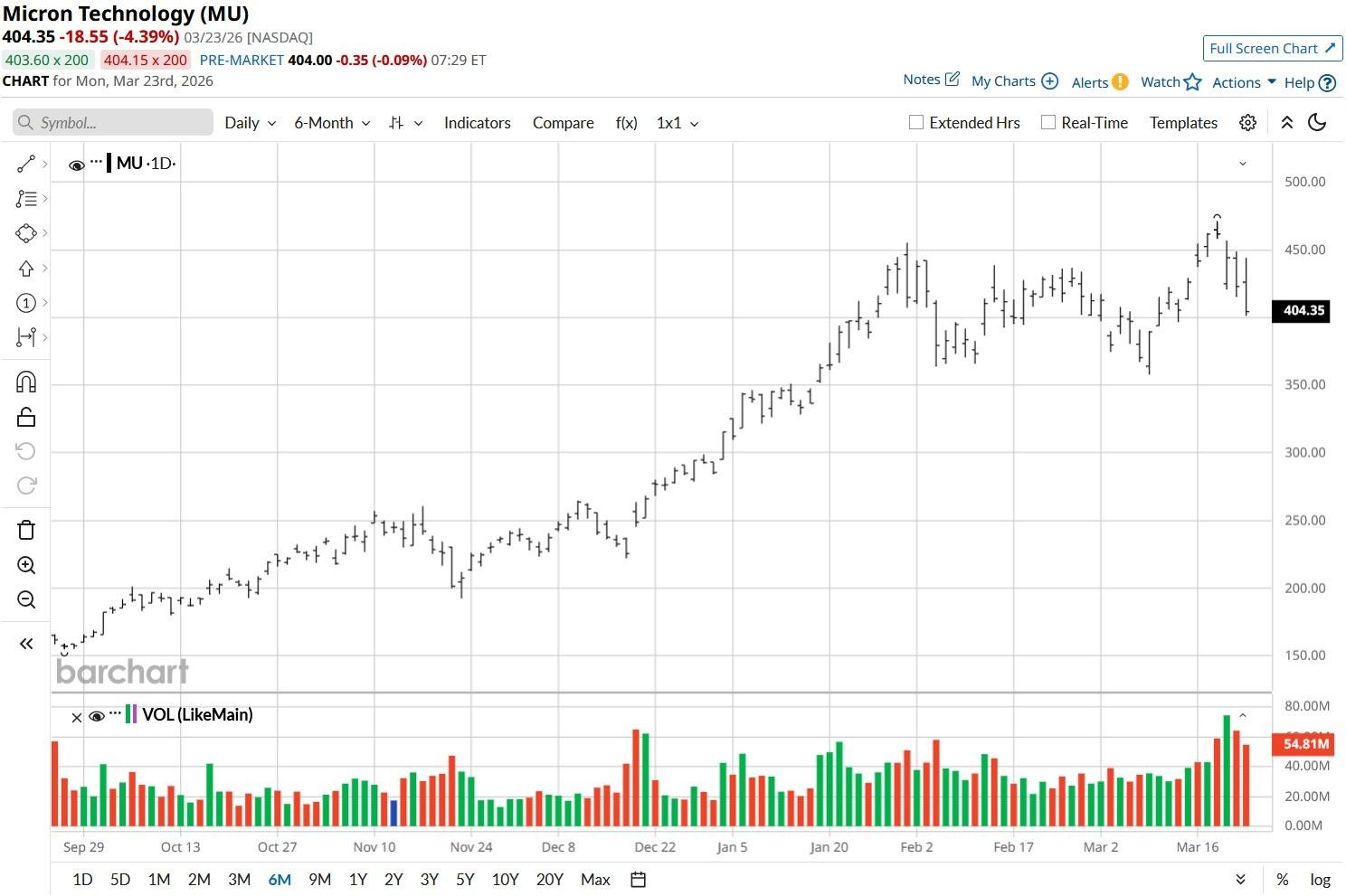 Micron Technology (MU) shares have tumbled in recent sessions as rising capital expenditures and geopolitical tensions continue to push investors to the sidelines. MU is now hovering just above its 50-day moving average (MA); a clear break below $402 would signal a shift in mid-term momentum, potentially inviting further selling.