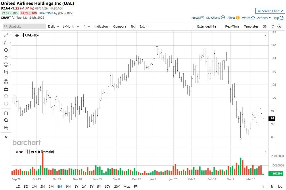 United Airlines (UAL) shares are pushing higher this week as a sudden, brief reprieve in global energy markets yesterday provided much-needed relief to the airline's bottom line. Following a poor start to 2026, the airline stock now looks headed to challenge its 200-day moving average (MA), with a clear breach of the $96 level expected to accelerate bullish momentum in the days ahead.