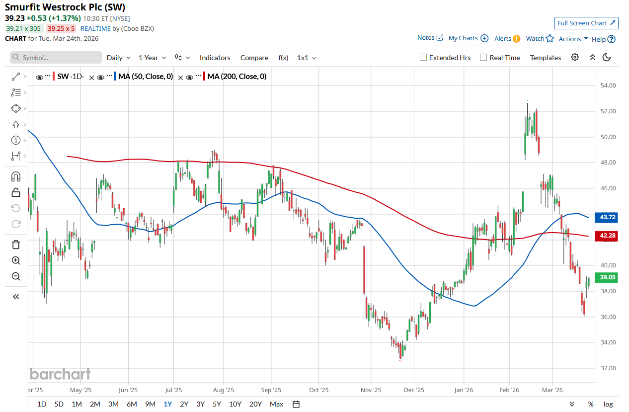 Zooming out a little further, the scenario changes. Over the past 52 weeks, SW has declined 13.8%, lagging behind DOWI’s 8% gain. SW has been trading below its 200-day and 50-day moving averages since the start of this month.