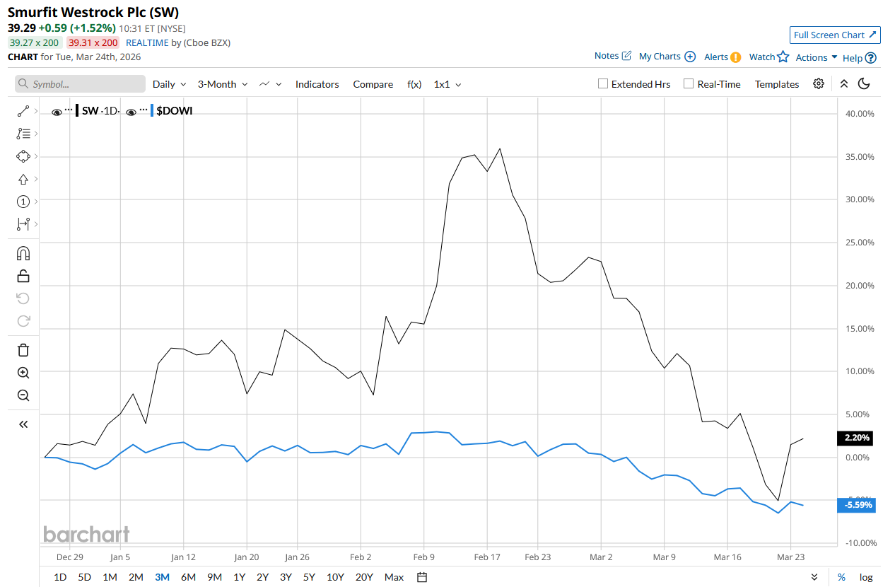 However, SW stock is down 26.3% from its 52-week high of $52.65 touched on Feb 12. Moreover, SW has risen 1.8% over the past three months and rallied the Dow Jones Industrial Average ($DOWI), which declined 5.6% during the same period.