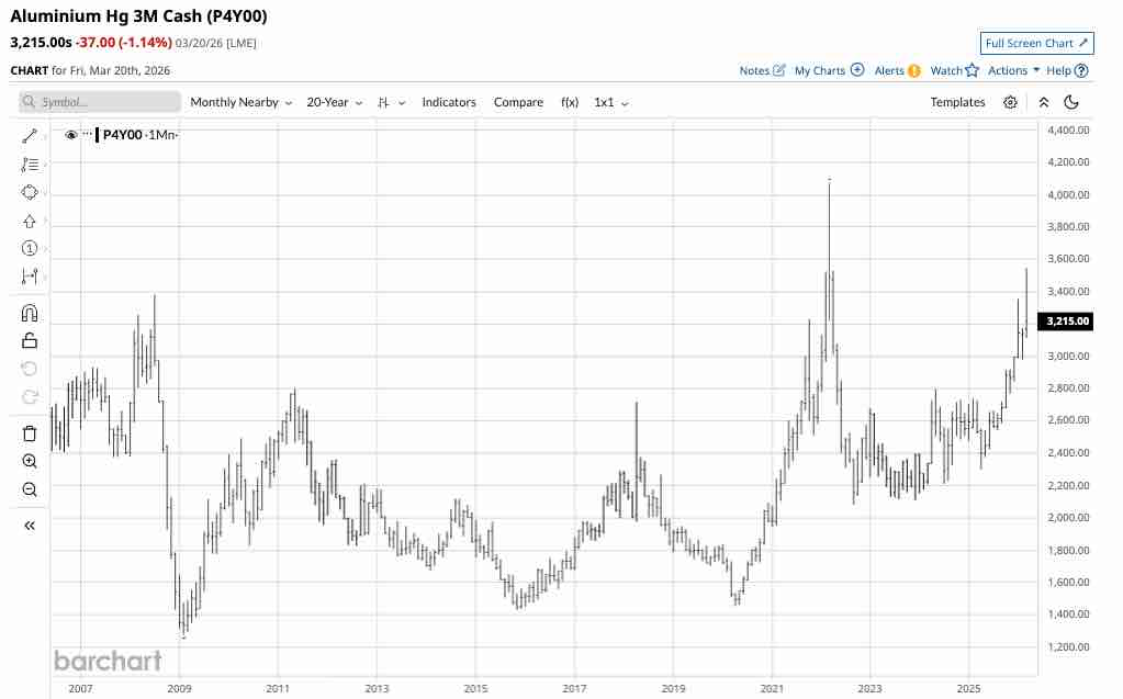 On February 28, 2026, the U.S. and Israel attacked Iran. Iran retaliated with drone and missile attacks on its neighbors hosting U.S. military bases. The UAE and Bahrain have been targets of Iran, igniting a bullish fuse in the aluminum market and driving prices to the highest level in four years.
