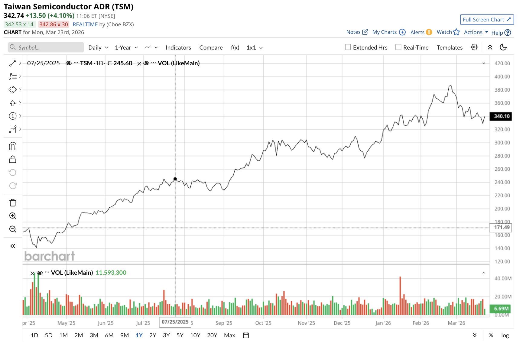 Even more telling is the scramble among TSM’s biggest clients — Apple (AAPL), Advanced Micro Devices (AMD), Broadcom, Nvidia, and Qualcomm (QCOM) — for guaranteed U.S.-based supply. These companies have explicitly asked Taiwan Semiconductor to expand Arizona production despite quotes that run 25% to 30% higher than in Taiwan.