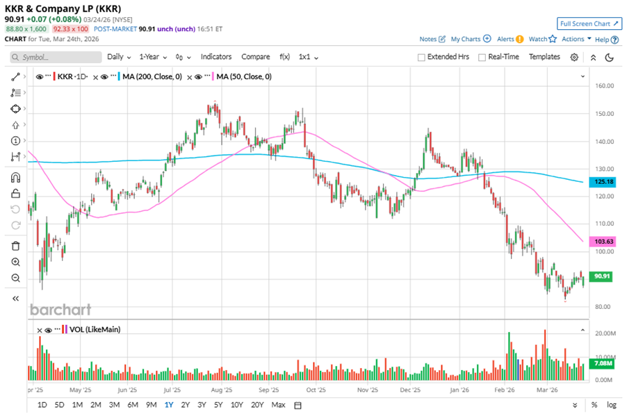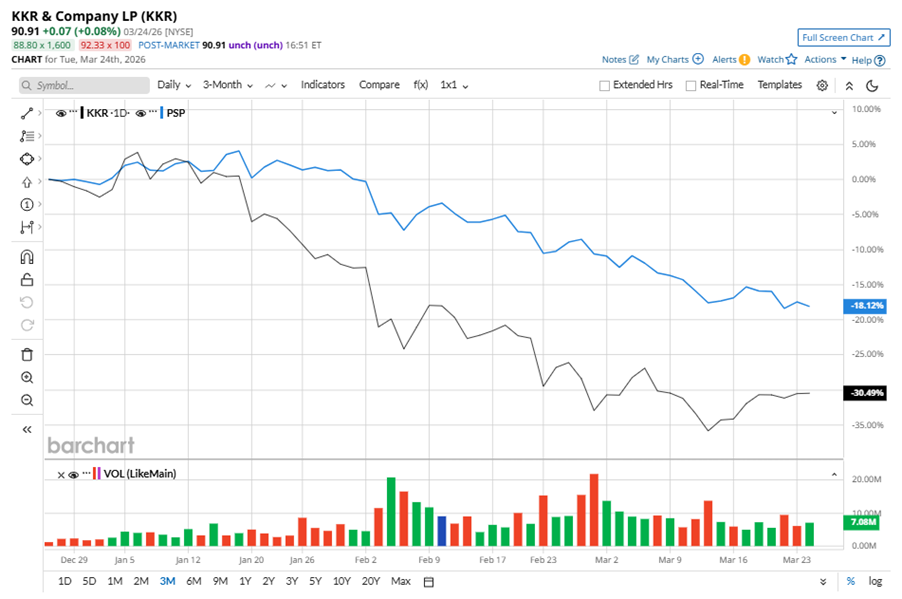 Despite its notable strength, KKR slipped 40.9% from its 52-week high of $153.87, achieved on Jul. 29, 2025. Over the past three months, KKR stock has declined 30.5%, underperforming the Invesco Global Listed Private Equity ETF’s (PSP) 18.1% dip during the same time frame.