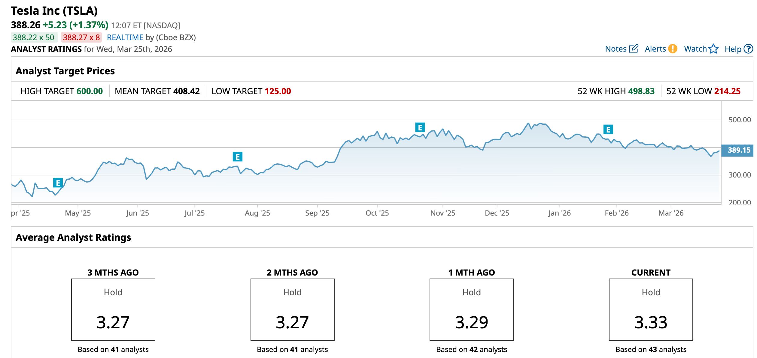Wall Street analysts are taking a cautious stance on Tesla’s stock now, with a consensus “Hold” rating overall. Of the 43 analysts rating the stock, 15 analysts gave a “Strong Buy” rating, two analysts gave a “Moderate Buy” rating, while 17 analysts are playing it safe with a “Hold” rating, and nine analysts gave a “Strong Sell” rating. The consensus price target of $408.42 represents a 5.2% upside from current levels. Moreover, the Street-high Wedbush price target of $600 indicates a 54.5% upside from current levels.