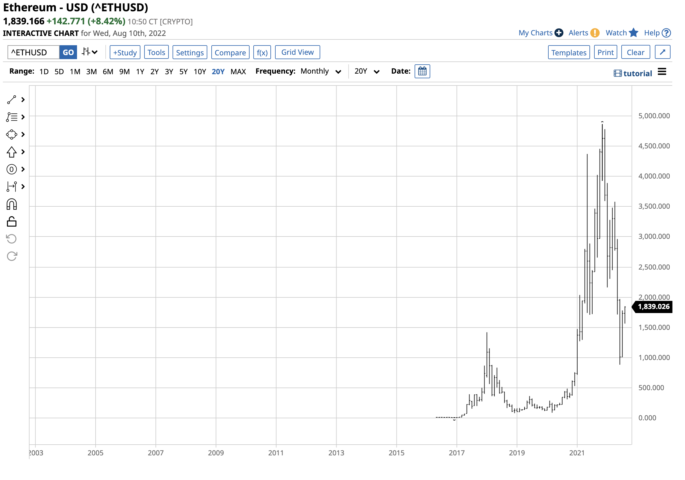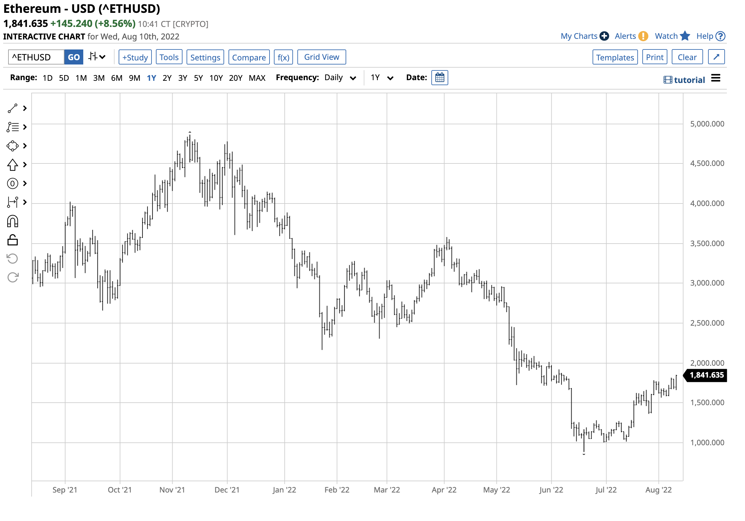 Ethereum fell from $4,865.426 to $883.159 during the same period, an 81.8% decline. The price was nearly double the level at the June 20 low as Ethereum has made higher lows and higher highs over the past weeks.