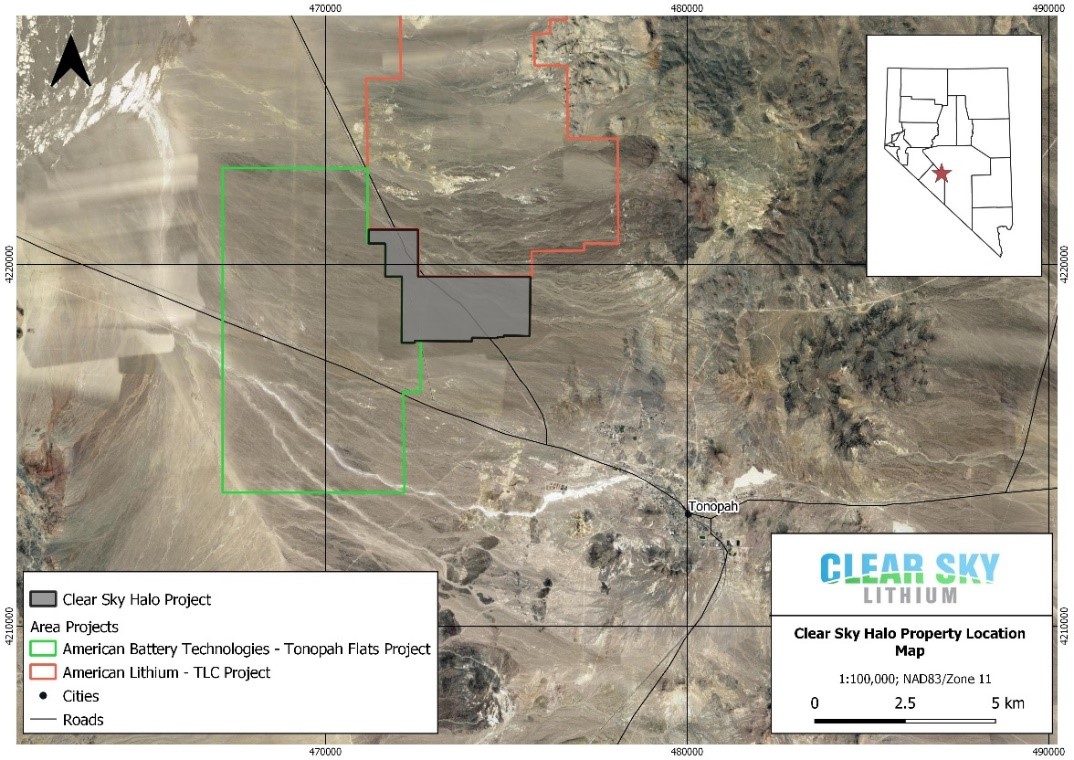 Vancouver, BC – August 17, 2022 —Clear Sky Lithium Corp. (CNSX:POWR.CN) (FRA: K4A / WKN: A3DM2W) (OTC:CSKYF) (“Clear Sky” or the “Company”), a mineral exploration and development company focused on American lithium deposits to support domestic demand, is pleased to announce that it has completed the initial option payment and share issuance for the recently acquired Halo Project, located along the lithium trend in southern Nevada within the Tonopah mining district.