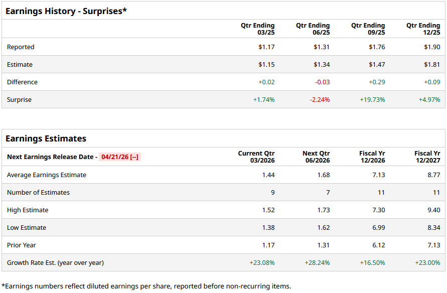 For fiscal 2026, analysts project the company’s EPS to be $7.13, up 16.5% from $6.12 in fiscal 2025. Moreover, its EPS is expected to rise by roughly 23% year over year (YoY) to $8.77 in fiscal 2027.