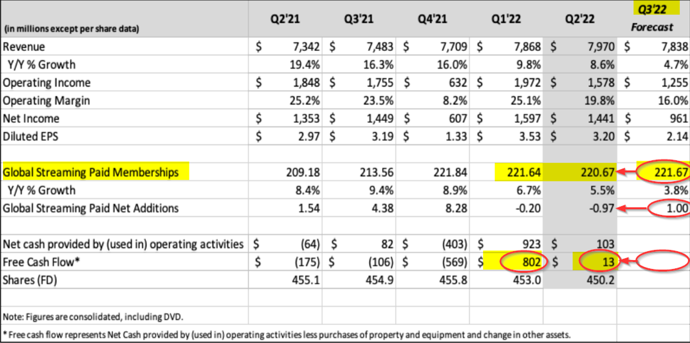 This shows that for Q3 Netflix predicts that paid memberships will rise by 1 million accounts over the Q2 levels to 221.67 million. This represents a one-half percent increase in memberships and is slightly higher than the 221.64 paid memberships at the end of Q1.