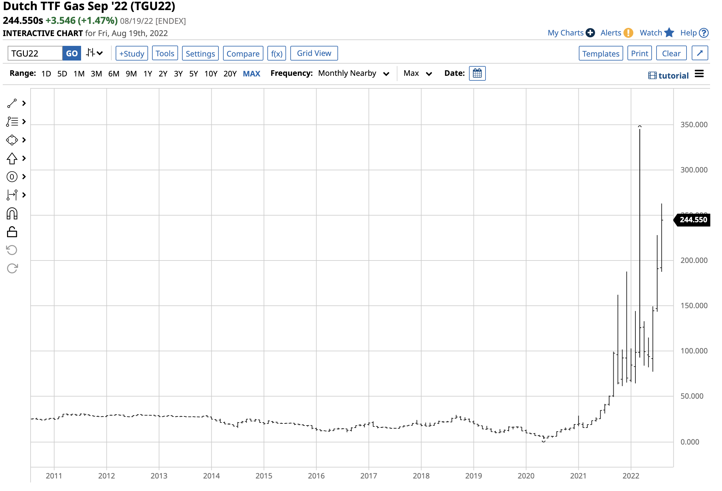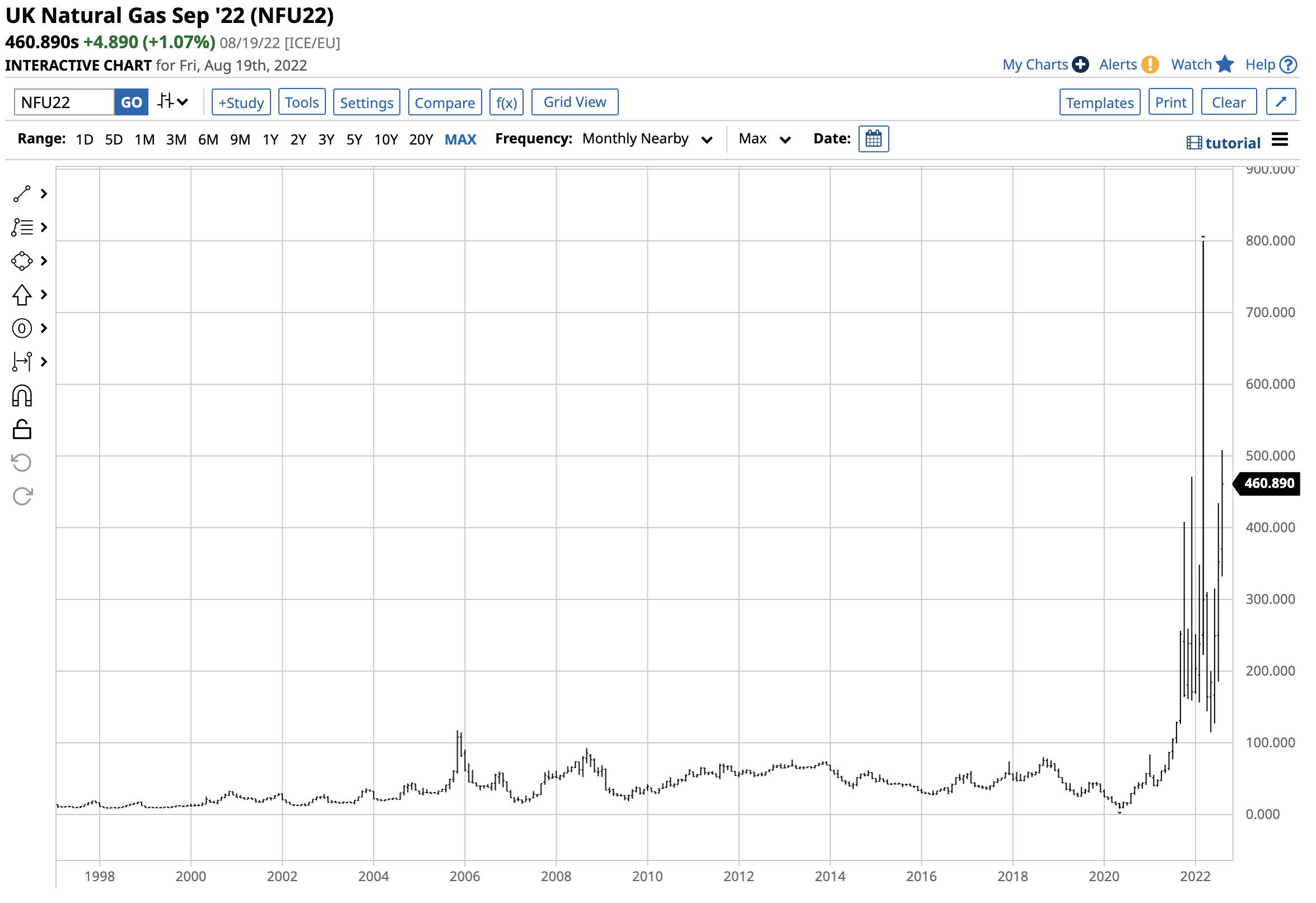 UK natural gas prices are in record territory. As the peak winter heating season approaches, Russia will likely squeeze Europe as punishment for supporting Ukraine in the ongoing war.