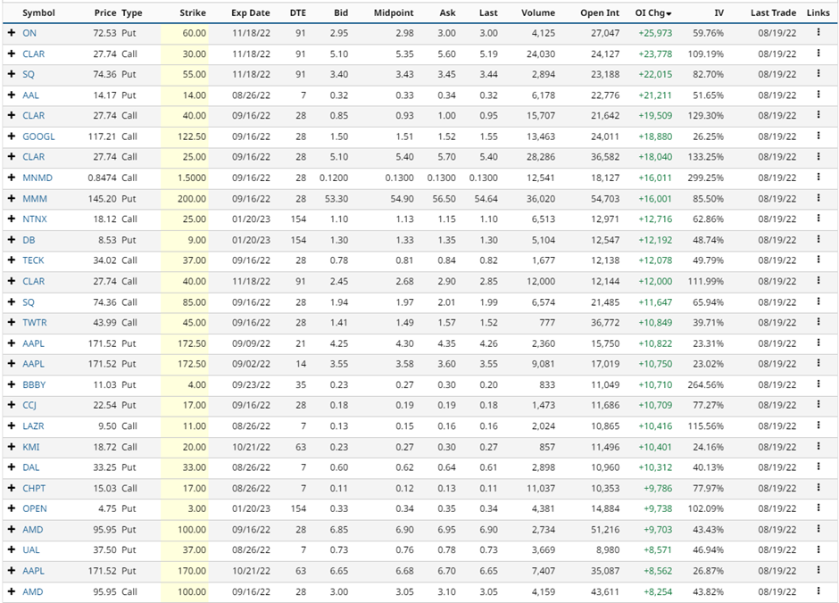 On Semiconductor (ON), Clarus Corp (CLAR), Block (SQ), American Airlines (AAL) and Alphabet (GOOGL) saw some of the largest changes in open interest last week.