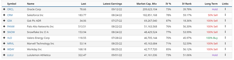 We can use Barchart’s Stock Screener to find other stocks with high implied volatility.
