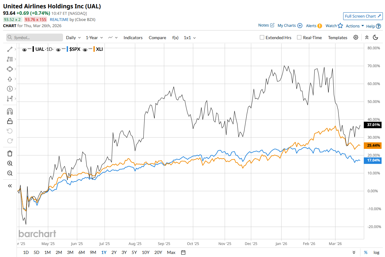 UAL stock has surged 21% over the past 52 weeks, outperforming the S&P 500 Index’s ($SPX) 14.9% rise but lagging behind the State Street Industrials Select Sector SPDR ETF’s (XLI) 22.7% return during the same time frame.
